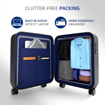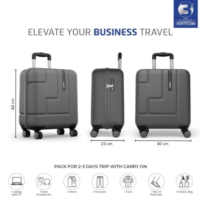 The Safari Aviator 50 cm Laptop Trolley Bag is a compact hard case cabin luggage with polycarbonate build, TSA lock, and 8-wheel 360° wheeling system—perfect for business trips and weekend travel.