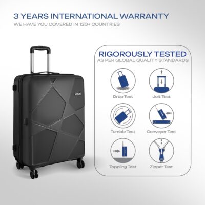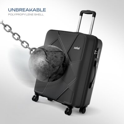 Safari Pentagon Pro is a durable 3-piece trolley bag set with 8 wheels for smooth 360° movement. Made from tough polypropylene, it includes cabin, medium, and large sizes for all travel needs.