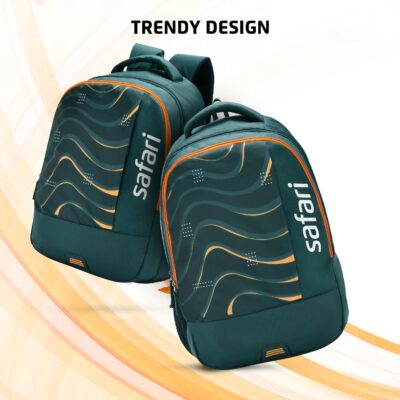 The Safari Whirl 32L Casual Printed Backpack in Dark Teal offers 2 compartments, a bottle holder, and front pocket, blending everyday utility with a trendy printed design. Ideal for school, college, office, or travel for all genders.