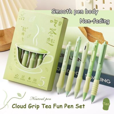 SAMVARDHAN 0.5mm Gel Pens | Retractable Quick-Dry Ink Rollerball Pens | Smooth Writing Fine Point Pens for School & Office (Pack of 5, Green Tea Theme)