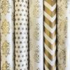 SATYAM KRAFT 5 Pcs White & Golden Premium Design Gift Wrapping Paper for Him/Her, gift Packing Sheets Decorative Romantic Gift Wrap for Birthday, Anniversary, Wedding, Return Gifts, Christmas, Packaging material, Craft (Golden Paper)
