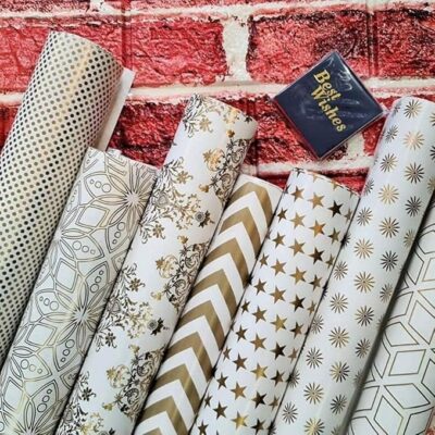 SATYAM KRAFT presents a premium set of 5 White & Golden Gift-Wrapping Papers designed to add elegance and charm to every celebration. Featuring luxurious golden patterns on a crisp white base, these high-quality sheets are perfect for gifting to him or her on birthdays, anniversaries, weddings, and festive occasions. Ideal for return gifts, Christmas presents, crafts, and decorative packaging, each sheet offers a smooth finish and a sophisticated look. Whether for personal use or special events, this romantic and stylish gift wrap set enhances every gift with a touch of luxury.