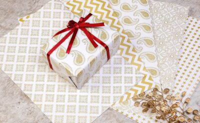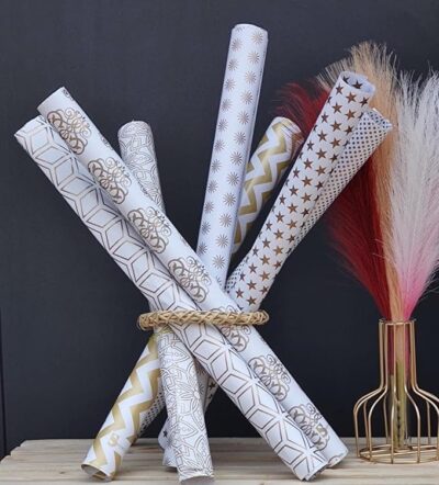 Featuring luxurious golden patterns on a crisp white base, these high-quality sheets are perfect for gifting to him or her on birthdays, anniversaries, weddings, and festive occasions.