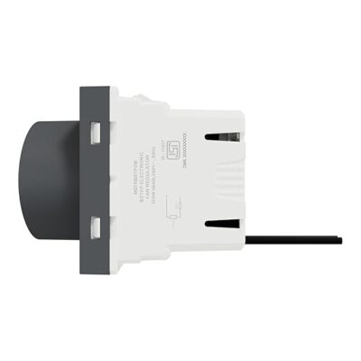 The Schneider Electric Miluz ZeTa 5-step fan regulator (2M) features a stylish anthracite finish with a soft, crisp-click semi-concave design. Made from durable PC and PA materials, it operates from -5°C to 45°C with IP20 protection. Certified under IS 11037 standards, it’s both functional and reliable.