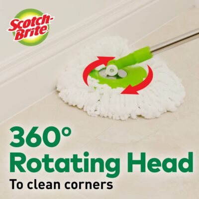 Scotch-Brite’s spin mop handle with head and refill is designed exclusively for the 2-in-1 Twin Bucket Spin Mop. Featuring microfiber technology for superior dust and hair pickup, and a 360° telescopic handle for easy cleaning in corners, this set ensures effortless wringing, rinsing, and long-lasting performance.