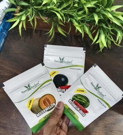 Seed Basket Pack of 3 Melons F1-Hybrid Seeds is a perfect combo for home gardeners, terrace growers, and farmers looking to cultivate high-yield, premium-quality melons. This value pack includes Green Watermelon (25 seeds), Black Watermelon (15 seeds), and Muskmelon (15 seeds), all F1-hybrid varieties known for strong plant vigor, excellent fruit setting, and superior taste. These seeds are suitable for kitchen gardens, open fields, and organic farming practices, performing well in tropical and subtropical climates. With proper care, the plants produce juicy, sweet, and flavorful fruits that are ideal for fresh consumption. An excellent deal for gardening enthusiasts and farmers alike, this melon seed pack helps you grow healthy, delicious, and market-quality fruits right from your own garden.