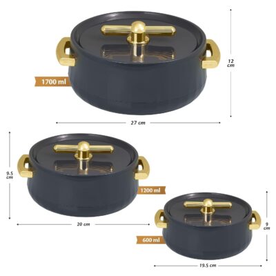 Selvel Elegance Royal Inner Steel Casserole Set of 3 (1700ml, 1200ml, 600ml)|BPA Free|Advanced P.U. Insulation|Keeps Food hot & Fresh Chapati, Roti, Biryani (Royal Dark Grey)