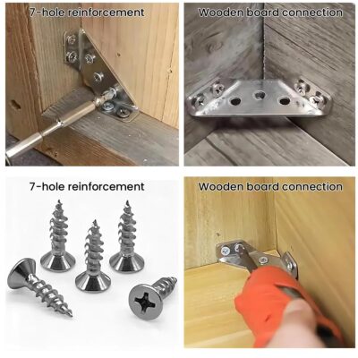 Each set includes 20 strong angle brackets along with 120 perfectly matched screws, eliminating the need to source extra hardware. Featuring a universal multi-hole design, these corner braces offer excellent versatility, making them ideal for connecting furniture joints, reinforcing shelves, mounting cabinets, or completing creative DIY projects.