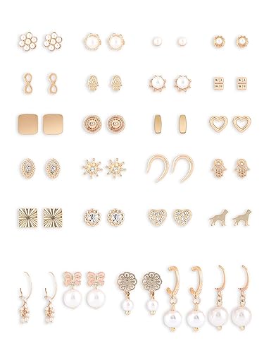 This Set of 25 Gold Tone Contemporary Studs & Drop Earrings offers a wide variety of stylish designs, perfect for women to match different moods and outfits. A versatile collection, it combines elegance, comfort, and everyday fashion in one set.