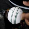 Water-resistant, white leather cricket ball with cork core and stitched seam for consistent bounce in club and school games.