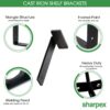 Sharpex Heavy Duty Metal Shelf Brackets for Wall Shelves – Black Powder-Coated (Pack of 2)