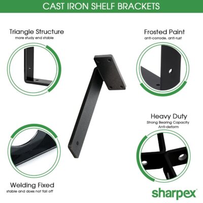 The Sharpex Heavy Duty Shelf Brackets offer a perfect blend of strength, durability, and style for your shelving needs. Made from high-quality metal with a black powder-coated finish, these brackets are rustproof, corrosion-resistant, and built to last.