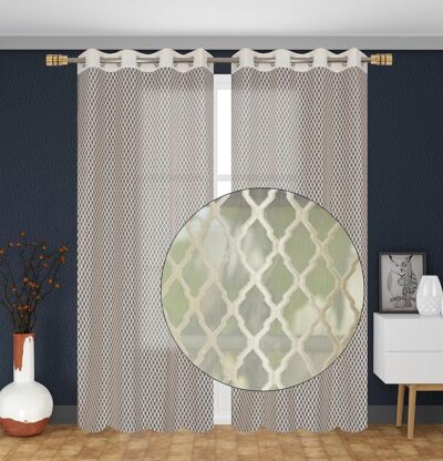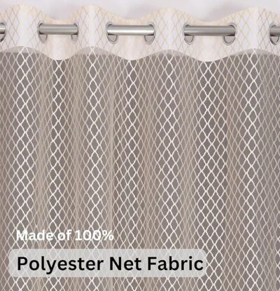 Sheer Polyester Net Transparent Eyelet Curtains Set of 2 (Beige, 9 Feet)