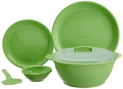 The Signoraware Plastic Round Dinner Set (21 Pieces) is designed for modern homes that value safety, durability, and convenience. Made from high-quality, 100% food-grade virgin plastic, it is BPA-free, hygienic, unbreakable, and lightweight, making it ideal for everyday dining. The set features a smooth, non-porous surface that is easy to clean and resistant to stains and bacteria buildup. With its stylish Parrot Green design, microwave-safe functionality, and stackable structure, this dinner set is perfect for family meals, picnics, parties, and gifting.