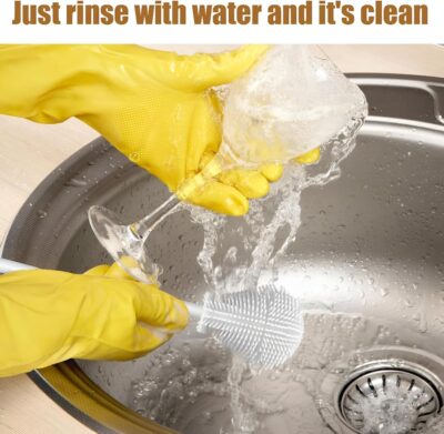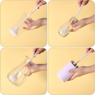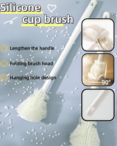 Silicone Bottle Cleaning Brush, 360 Degree Rotational, Flexible Soft Bristle, Long Handle Cleaning Brush for Jar, Cup, Glass Mug Container and Kitchenware (29 × 5.5 × 1cm) Pack of 1
