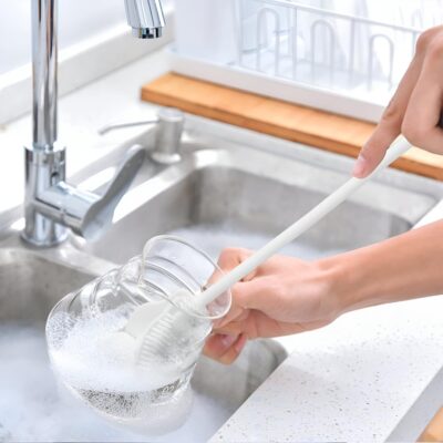 The long handle provides easy reach into deep bottles and narrow-neck containers, ensuring every corner is spotless. Made from durable, food-grade silicone, this brush is safe, easy to clean, and built to last. Measuring 29 × 5.5 × 1 cm, it is lightweight, convenient, and ideal for everyday use in maintaining a hygienic kitchen.