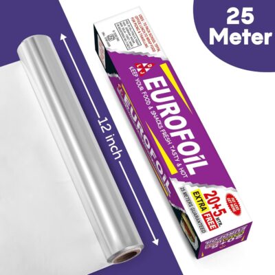 Silver Aluminum Foil Paper Roll for Food Packing 25m 11 Micron, Premium Food Wrap for Kitchen, Ideal for Wrapping, Packing, Storing and Serving (Pack of 1)