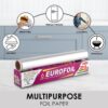 Ideal for wrapping sandwiches, snacks, and cooked meals, it is also perfect for lining baking trays, covering dishes, and storing leftovers. This multi-purpose foil ensures hygienic food handling.
