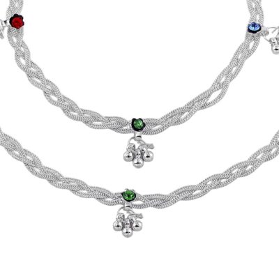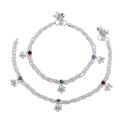 Add a playful sparkle to your everyday style with this Silver Tone Charm Anklet, designed with a beautiful twisted chain pattern and vibrant colorful accents. The elegant silver-tone finish combined with charming multicolor details creates a trendy and eye-catching look perfect for modern women.