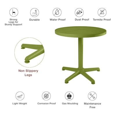Sky Glamour Supreme Penta Plastic Table|2-Seater Round Plastic Dining Table for Home, Office, Garden, Indoor& Outdoor Use (Color: Mehndi Green; Qnt:1 Pcs.)