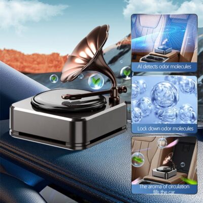 Crafted in the likeness of a classic gramophone, this elegant dashboard decoration infuses the cabin with a delightful, long-lasting fragrance while rotating gracefully under sunlight to captivate the senses.