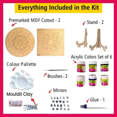 Unleash your artistic side with the SOLOBOLO Lippan Art and Craft Materials Kit, designed for adults and beginners who love traditional Indian art forms. This DIY Warli and Lippan art painting kit includes a premarked MDF board, vibrant materials, and stands for easy display as room wall décor or office decoration. Perfect for creative relaxation or as a thoughtful handmade gift, this kit combines heritage art with modern crafting convenience. Whether you’re exploring a new hobby or decorating your home, this Lippan art kit adds a touch of cultural elegance and creativity to your space.