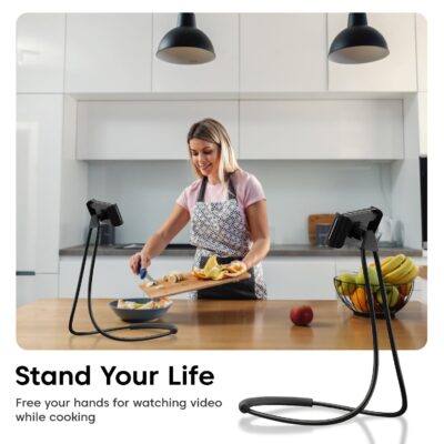 The Sounce Lazy Neck Phone Holder is a flexible, hands-free mobile stand that combines convenience with adjustability for everyday smartphone use. It features a long, bendable arm and 360° rotating clip mount that lets you position your phone at virtually any angle or viewing distance — perfect for watching videos, video calls, browsing, or following recipes without holding your device. The holder is compatible with most smartphones ranging from about 4″ to 7″ in size, offering versatile support for a wide range of devices. Its flexible design lets you bend and twist the arm to your preferred position, giving you comfortable, strain-free viewing whether you’re in bed, on the couch, at a desk, or even clipped to a bicycle or other surface. Made with a mix of sturdy materials and anti-skid foam padding, the stand ensures your phone stays secure and minimizes shaking during use. With its hands-free convenience and adjustable features, this lazy neck holder makes everyday screen time more comfortable and flexible.