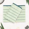 100% cotton hand towel in sea green/teal, ribbed texture, size 40 × 60 cm, with high absorbency and soft loft.