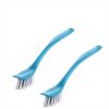This pack includes two plastic brushes in assorted colors, each equipped with tough bristles that help remove stubborn stains, grease, dirt, and grime from sinks, basins, countertops, tiles, and utensils.