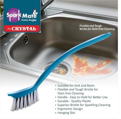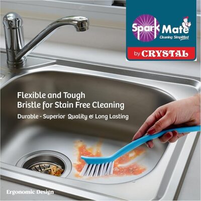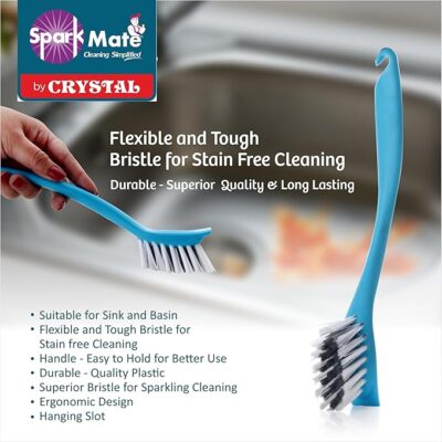 Sparkmate By Crystal Sink & Basin Brush, Assorted (Pack of 2) is a handy and effective cleaning set designed for everyday use in your kitchen and bathroom. This pack includes two plastic brushes in assorted colors, each equipped with tough bristles that help remove stubborn stains, grease, dirt, and grime from sinks, basins, countertops, tiles, and utensils. Their compact size and ergonomic shape make them easy to handle and maneuver, allowing you to reach into corners and along edges with better control. Lightweight yet durable, these brushes are ideal for routine dishwashing and surface cleaning, making them a practical addition to your household cleaning tools.
