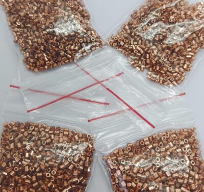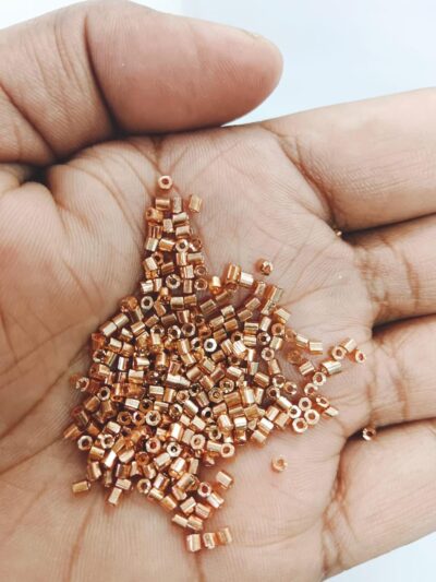 Special Copper Cut dana Sugar Tube Beads (3mm) – Add a touch of shimmer and sophistication to your craft projects with this premium pack of 100 gm Cut dana Sugar Tube Beads. Made from high-quality copper material, these 3mm beads are perfect for Aari work, Maggam embroidery, and jewelry making. Their smooth tubular shape and sparkling metallic finish make them ideal for enhancing bridal blouses, sarees, handbags, and decorative art pieces. Easy to sew and durable in design, these beads bring a refined and elegant look to any handcrafted creation. Perfect for professional designers, artisans, and DIY enthusiasts, the Special Copper Cut dana Sugar Tube Beads are a must-have for adding rich texture and brilliance to your embroidery and jewelry projects.