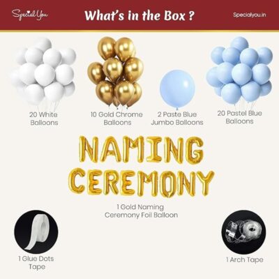 The Special You Blue Naming Ceremony Decoration Kit is a beautifully curated 55-piece décor set designed to make your baby boy’s naming ceremony joyful, elegant, and unforgettable.