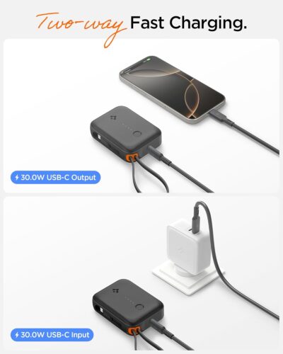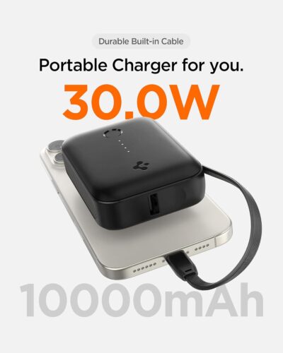 The Spigen ArcPack 10000 mAh Power Bank delivers premium performance and convenience in one ultra-slim design. With a built-in USB-C cable, you can charge your devices instantly—no extra cables needed. Supporting 30 W PD 3.0 and PPS fast charging, it powers smartphones, tablets, and even laptops with lightning speed.