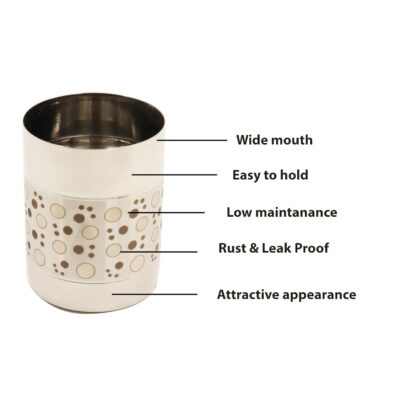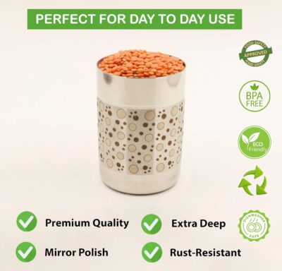 The Spillbox Stainless Steel Rice Measuring Padi (Uzhakku / Changazhi / Azhakku / Nira Para) is a traditional South Indian measuring vessel used for accurately measuring rice, wheat, pulses, and grains. This extra-large size measuring pot has a 120 ml capacity and is made with a sturdy stainless steel build, making it durable, rust-resistant, and long-lasting.