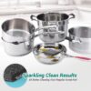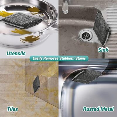 Made from robust stainless steel, this power scrubber effectively removes stubborn grease, burnt-on food, and tough stains from utensils, pots, pans, and other cookware with ease.