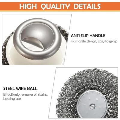 The strong, ergonomically designed handle provides a secure and comfortable grip, protecting hands from heat, water, and oil splashes while scrubbing.