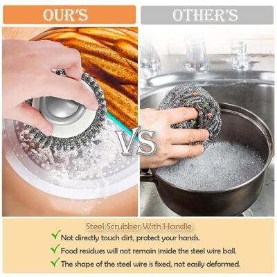 Stainless Steel Scrubber with Handle – Heavy Duty Steel Wool Scrubbing Brush for Cleaning Dishes, Pots, Pans, and Sinks (1)