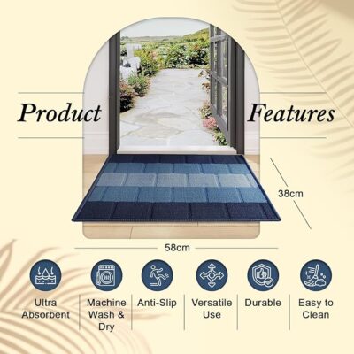 The Status Contract Anti-Slip Front Door Mat is a durable and stylish polypropylene floor mat designed for both functionality and modern appeal. Measuring 38 x 58 cm, this blue mat is perfect for use at entrance doors, living rooms, offices, bedrooms, or kitchens. Crafted from high-quality, weather-resistant polypropylene fibers, it effectively traps dirt, dust, and moisture, keeping your floors clean and tidy. The anti-slip backing provides a strong grip on all floor types, ensuring safety and stability in high-traffic areas. Easy to clean and quick to dry, this compact and practical mat combines strength, convenience, and contemporary design, making it an essential home accessory for everyday use.
