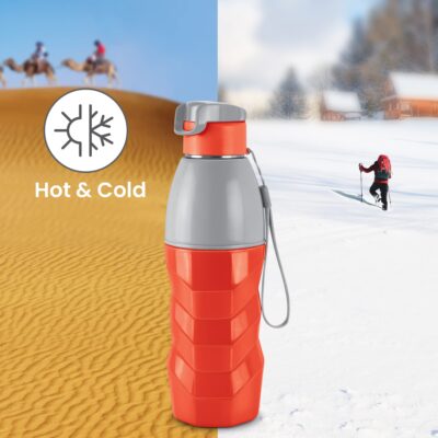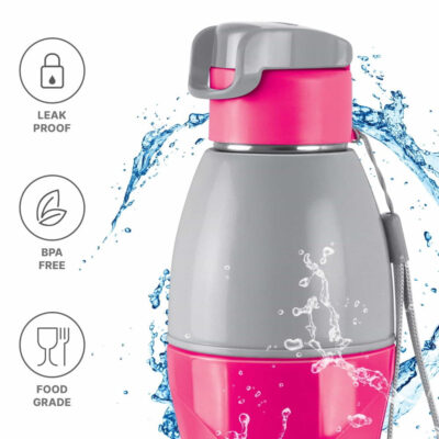 Color: Cherry Pink; Material: Inner Steel, Outer Plastic; Package Content: 1 – Piece Steel Racer Insulated Water Bottle (630 ml); Dimension in cms (L x W x H): 8 x 8 x 9.4