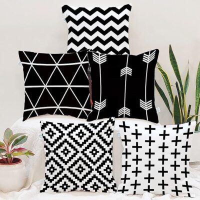 STITCHNEST Set of 5 Polycotton Cushion Covers – 16x16 Inches – Black & White Geometric Prints – Modern Cushion Covers for Sofa & Living Room Decor