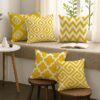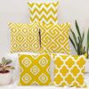 STITCHNEST Set of 5 Polycotton Cushion Covers – 16x16 Inches – Yellow & White Ikat Geometric Print – Elegant Cushion Covers for Sofa & Living Room Decor