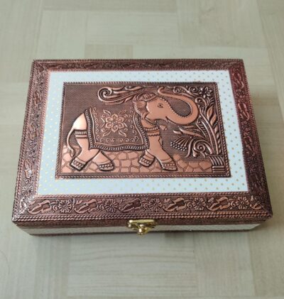 This Storage Box with an elegant elephant design is a beautiful organizer for women’s jewellery, offering space for earrings, rings, chains, and small accessories. Its artistic look makes it ideal for festive return gifts and special occasions.