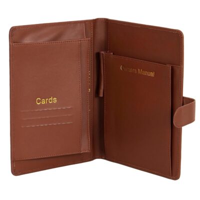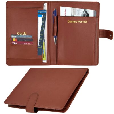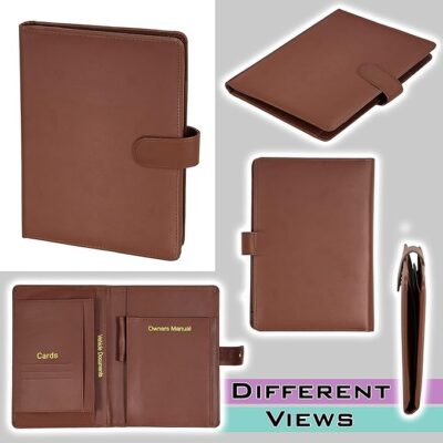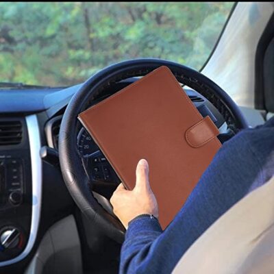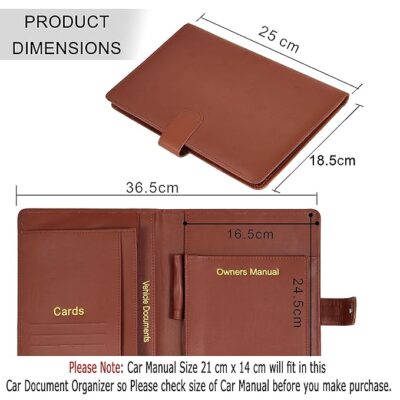 Storite Car Document Holder Owner Manual Durable Leather Vehicle Document Organizer is a stylish and functional car accessory designed to help keep all your important vehicle documents neatly organized and easily accessible. Made from durable PU leather with a classic brown finish, this multi-pocket document holder provides dedicated compartments for your vehicle registration & insurance cards, driving license, RC book, owner’s manual, and other paperwork, helping prevent clutter in your glove box or console. The compact and portable design ensures it fits conveniently in your car while keeping documents safe and protected from damage or loss. With secure closure and plenty of space for cards, manuals and receipts, it’s a practical solution for everyday drivers who want an organized, tidy interior and quick access to essential documents when needed.