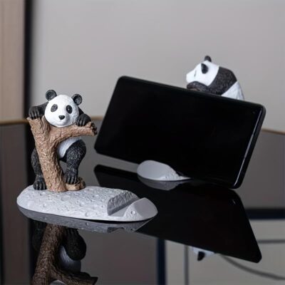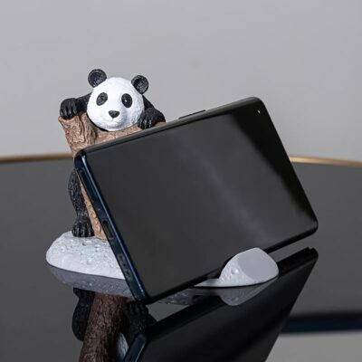 Adorable panda-themed mobile stand made from premium resin/PVC, perfect for desks, home décor, and gifting on special occasions.