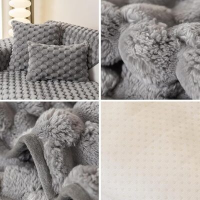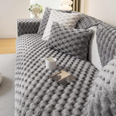 Styley's Luxury Faux Rabbit Plush Fur Sofa Cover for L Shape & 1/2/3 Seater – Ultra Soft Couch Protector, Non-Slip, Washable Furniture Mat, Elegant Living Room Sofa - 70X60cm, Dark Grey, XGBSFD-1A