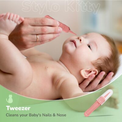 Stylo Kitty New Born Baby 4-in-1 Nail Grooming Kit is designed to make nail care safe, easy, and comfortable for your little one. The kit includes a baby nail cutter, tweezers, a gentle nail filer, and scissors, all crafted to protect delicate nails and sensitive skin. Each tool is ergonomically designed for precision, ensuring parents can trim and shape nails safely without causing discomfort or injury. The compact and lightweight peach-colored kit is easy to store and carry, making it perfect for travel and daily use. Made with high-quality, durable materials, it guarantees long-lasting performance and safety. The smooth edges and non-slip handles provide extra control and minimize risks while grooming. With this all-in-one set, maintaining your baby’s nail hygiene becomes convenient, safe, and stress-free, ensuring their tiny nails stay neat and healthy.