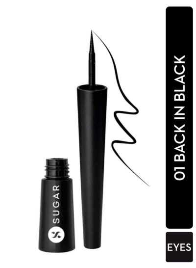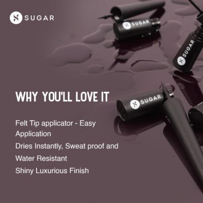 SUGAR Cosmetics Gloss Boss 24Hr Glossy Eyeliner Gel provides a deep, glossy black color designed for striking eye looks.