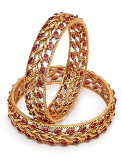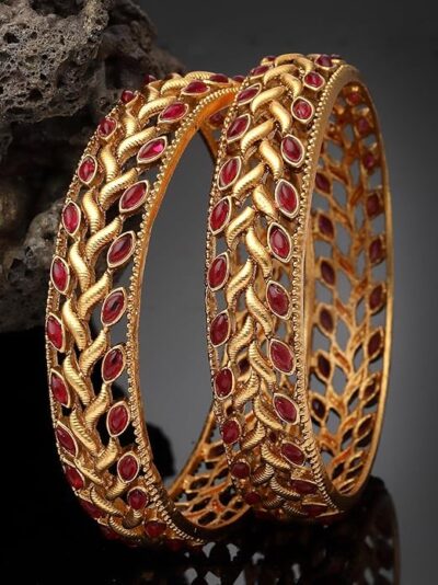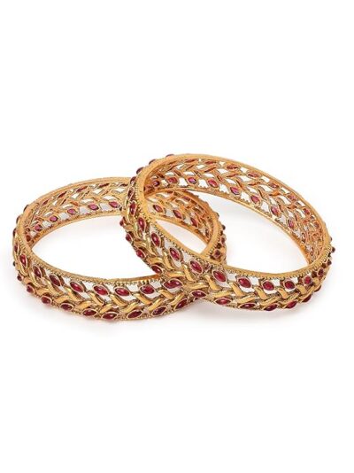 Add a vibrant and elegant touch to your ethnic collection with this stunning traditional kada bangle set from Sukkhi. Beautifully gold plated and adorned with rich red and green accents, this bracelet-style bangle showcases classic Indian design with a festive flair. The intricate craftsmanship and striking color contrast make it perfect for weddings, festivals, parties, and other special occasions. Lightweight yet durable, it’s comfortable to wear throughout the day and complements a wide range of outfits — from sarees and lehengas to salwar suits and anarkalis. A versatile piece that adds charm and grace to your look, and an ideal gift choice for women and girls who appreciate timeless traditional jewellery.