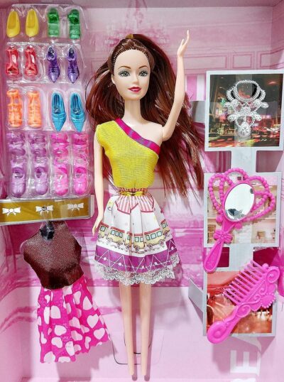 The set includes 8 pairs of high-heeled shoes, one extra dress, and makeup accessories, allowing kids to explore endless styling options. Each doll’s hair and dress color may vary, adding a surprise element that makes every purchase unique and exciting.