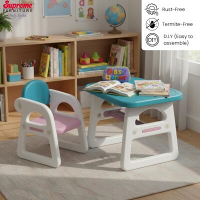 With smooth edges and child-safe materials, this set delivers comfort, convenience, and functional style in cheerful colours like white, pastel blue, and pink, encouraging kids to learn and play in a comfortable environment.